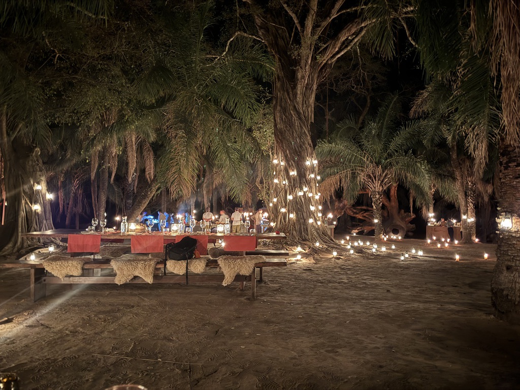 The evening meal BBQ was served at a remote location from the lodge with lanterns and fairy lights making a magical atmosphere.