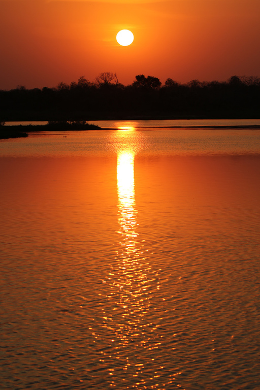 On our morning drive we went to check out a cow carcass just in case there were any cats in the vicinity. A drive around didn’t locate any and I asked if we could drive towards a flock of spoonbills to get some pictures. We drove around some trees and back onto the track when a large male jaguar came out of the cover of a culvert and posed for us! What wonderful luck! He waited long enough for us to grab several nice shots of him and then he headed off towards the carcass, swimming across a pond. After following for short distance, we decided to give him some peace and left him to return to the lodge for our breakfast.