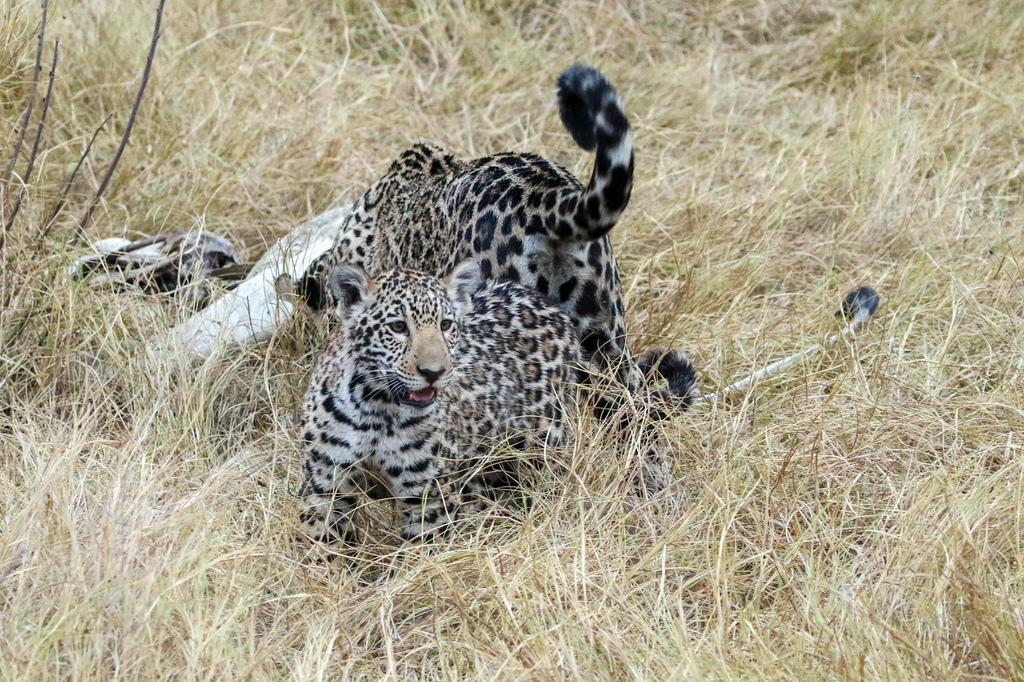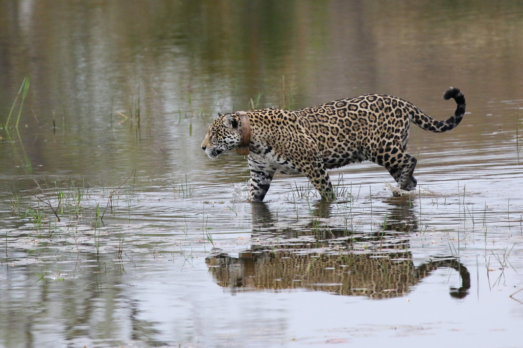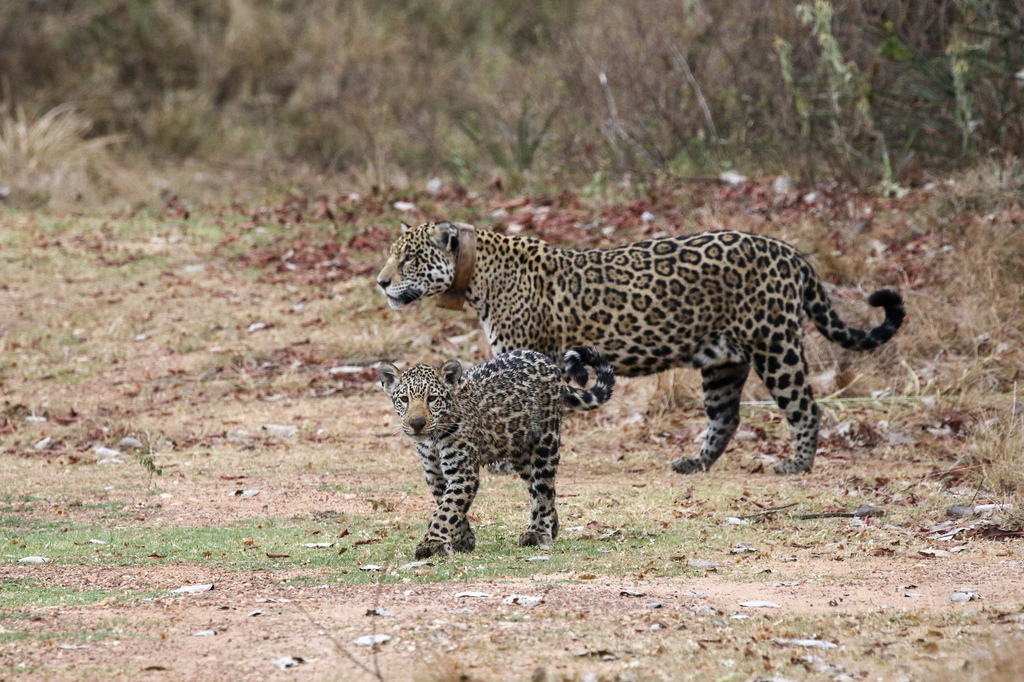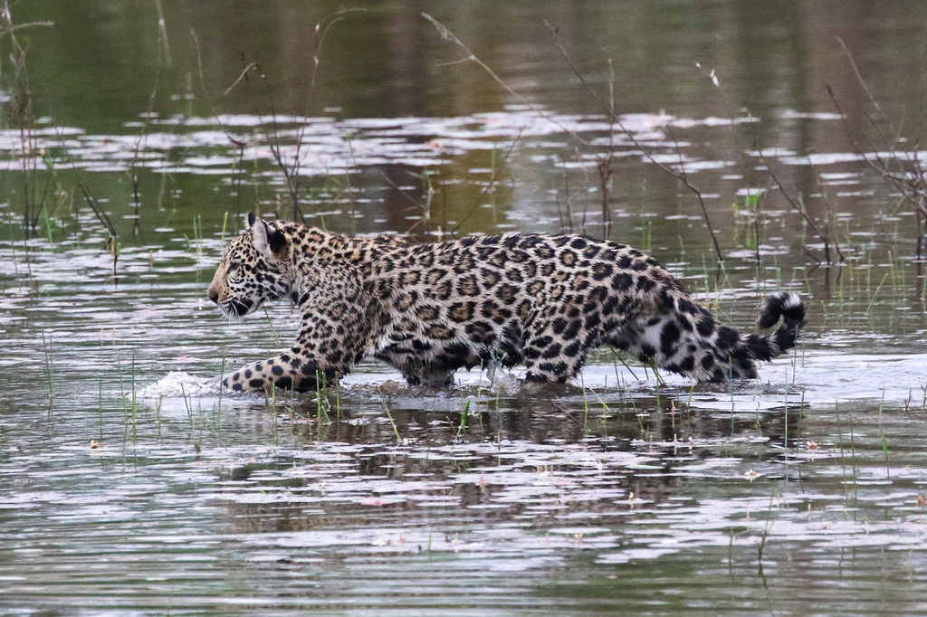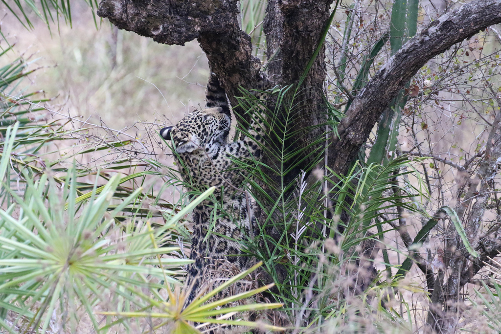 The afternoon/evening drive was special too, we spent an extended period with the jaguar and her cub. We followed them through some bush land, towards a pond, along a track and then to a cow carcass.