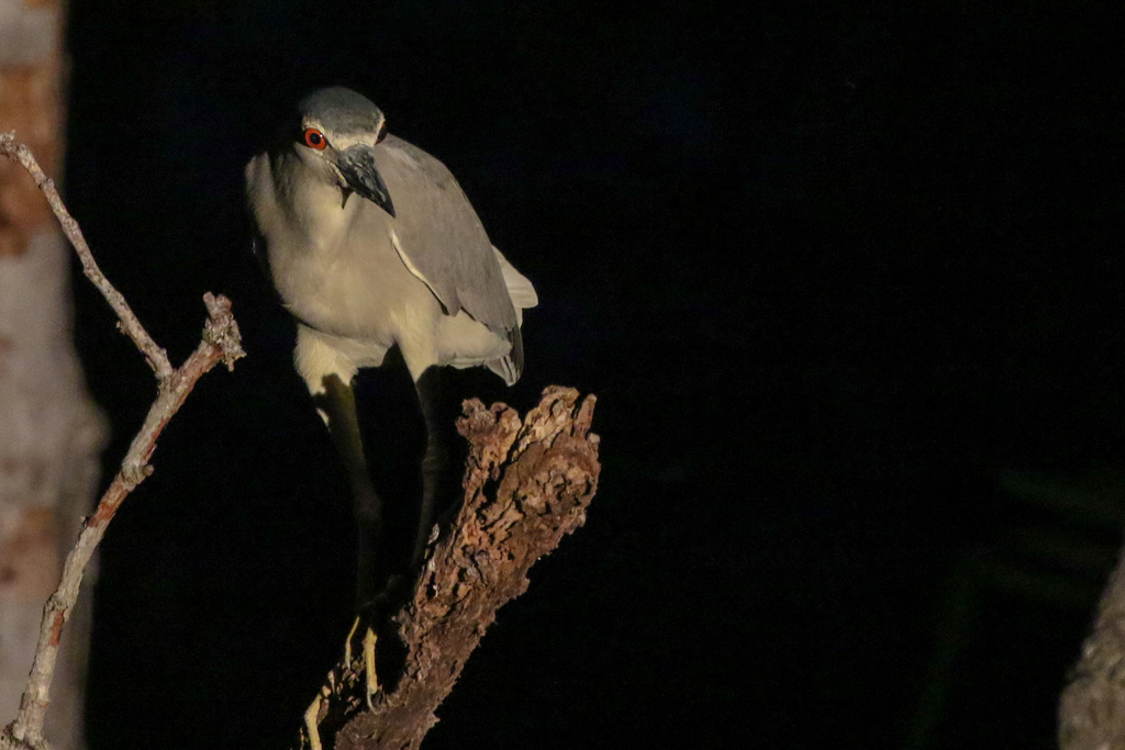 Our vehicle buddies changed from two American couples to two British couples. The one couple hadn’t arrived in time to join the afternoon/evening drive, so it was just four of us and again we got very lucky when a female jaguar walked out of some trees and sat, then lay down on an elevated embankment with a perfect view for all in our vehicle. We sat watching her and waited for the sun to set to see if she would go hunting. While we waited, we watched a potoo hunting moths, it was a very special experience watching it open its wide mouth flying backwards and forwards across the pond. Meanwhile, our female jaguar got up stretched and slowly made her way along the pond’s edge. She made slow progress around the pond then into it swimming towards an unseen target. Eventually she came back out of the pond and walked behind our vehicle along the track and disappeared. We had this whole long experience to ourselves.