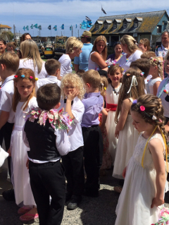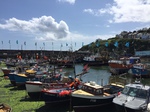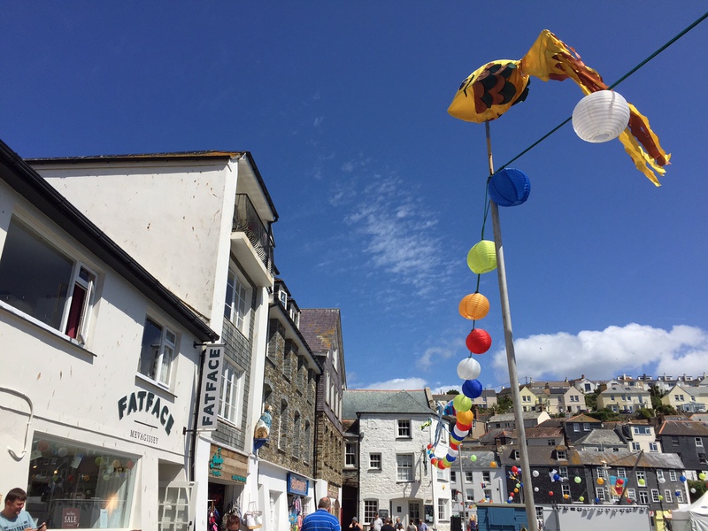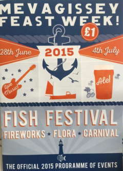 …and then headed to Mevagissey (our home village for the next seven nights). Today is the last day of the Mevagissey Feast Week, the village has celebrated the ‘Feast of St Peter’ here since 1754. The week has involved a flower festival, fishing boat race, fish festival, teddy bears picnic, crab catching contest, water polo, pavement artist competition, sculling race and lots of live music. Today, the last day of the weeklong festival, would include a flora dance, fete, carnival and firework display.