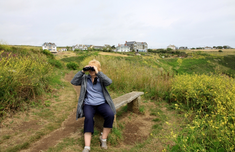 We strolled back to Mevagissey along the same trail, stopping again to view several recently fledged birds, to watch a peregrine falcon swooping in the strong breeze and an oyster catcher looking for a meal amongst the rocks.