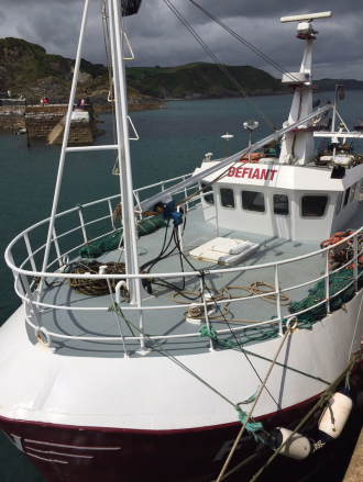 My parents had stayed in Mevagissey last year and had watched the comings and goings of a fishing trawler called Defiant, for some reason they had decided to keep me informed of every move it made during our stay too… despite me pointing out I wasn’t much interested. Anyway, it was docked in the harbour so having heard so much about it I decided to take a couple of pictures of it! The crew were busy mending the nets ready for its next trip out later tonight when high tide would return.