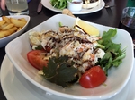 We had a table booked at the Salamander restaurant at 18:00 and had a couple of hours to kill, Mum & I filled the time with shopping, a visit to the tiny aquarium and then we sat around the harbour watching the seagulls stealing fish from the fishing boats.