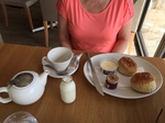 14:00 arrived and we watched the children get ready for the flora dance while we headed back up the hill to our cottage. We had bought some pasties, scones & Cornish clotted cream in the village and we ate them looking out over the harbour.