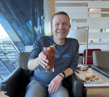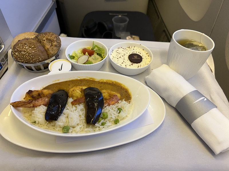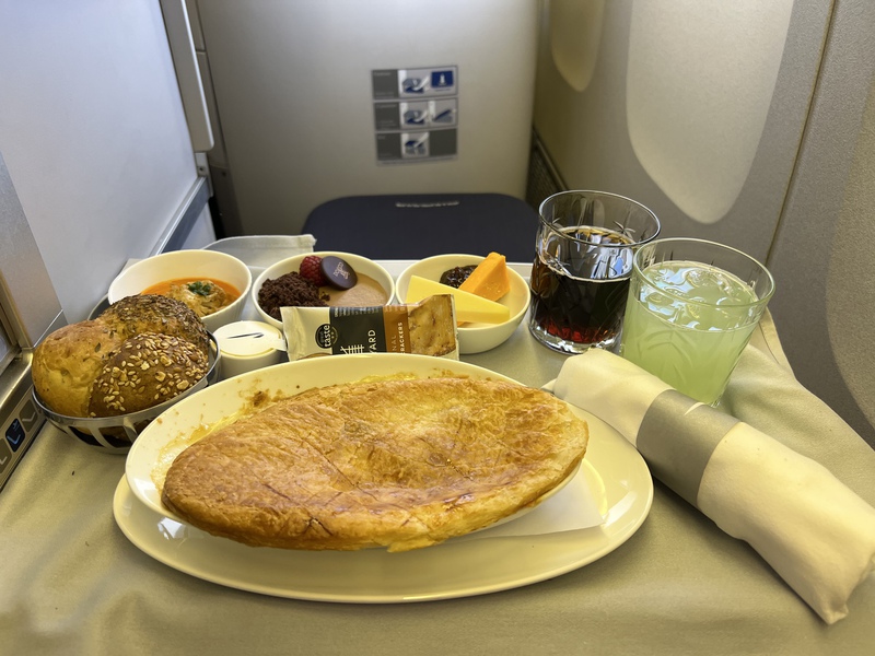 We had seen comments on social media about the food service not having returned to pre-covid quality. However, the food was pretty good, the service was different with everything on one tray rather than delivered in courses, but honestly that was fine. We both had chicken & leek pie for the main meal and prawn curry for the second meal which was served an hour before landing. For the first third of the flight drink service was great but it pittered out as the crew went into hibernation mode. This didn’t stop Alan, who ensured he always had a drink in front of himself.