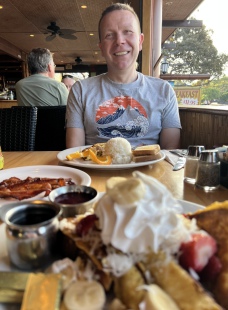 No surprises we were up early and out for a walk waiting for the restaurants to open. The Fish Hopper Seafood & Steaks restaurant had good reviews and opened at 7am, so queued outside with some of the locals. We had a nice hearty breakfast and then went back to the room to unpack and settle in a bit more. We walked around the hotel grounds and did some fish spotting off the pier.