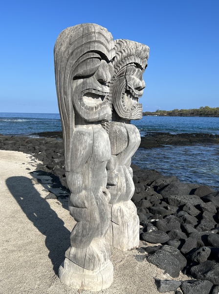 Today we returned to Pu’uhonua o Hōnaunau National Historical Park - we visit this historical park every time we visit Big Island. It’s such a beautiful special site for Hawaiians. The bones of 23 chiefs are housed in the temple here. Beyond the Great Wall around the temple grounds, the Pu’uhonau served as a place of refuge for those that broke kapu (the laws & beliefs by which Hawaiian’s lived).