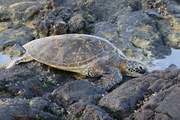 We ate a couple of bagels as we got ready and were out driving to Kaloko-Honokohau National Historical Park as the sun was rising. We never failed to see turtles here and this trip was no exception. I don’t remember there being chickens (Hei Hei) everywhere on our last visits, but I guess they must have been there! Our walk to beach was escorted by the dawn chorus and hei hei letting everyone know it was morning. As we walked out of the trees to the beach a large mongoose ran into cover. Hei hei on the other hand was happy to keep shouting about the dawn. A turtle was out on the beach and we were careful not to disturb it and walk around the back of it and watched it start making its way back to the sea.