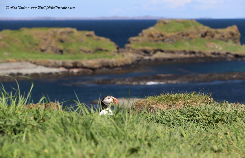 Then back on the boat for half an hour to Lunga and a four hour stop with the Puffins and other seabirds who roost there. We climbed up the path and after a bit of watching, set up to have our packed lunch and Puffin photography.