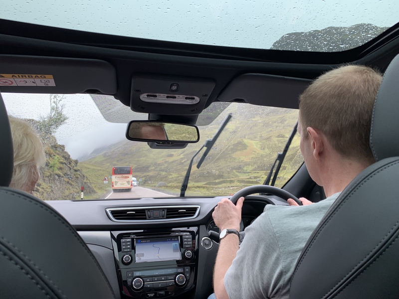 A short 20 minutes and then we joined the A884 to drive on towards Fort William. We let he locals pass, enjoyed the scenery. At Ardgour, the rain came back and we took the very short ferry ride across Loch Linnhe to Corran.