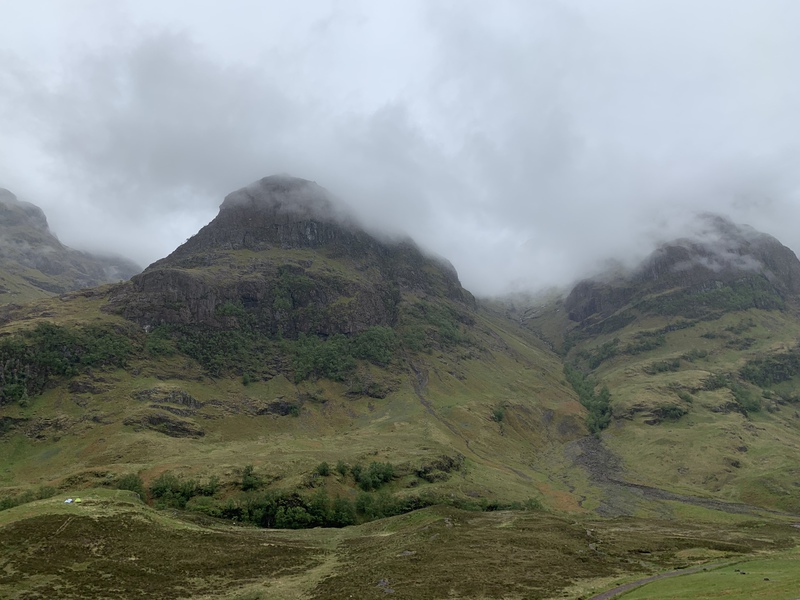 Another good Scottish breakfast, then north around Glasgow on the M77 and M8, before crossing the Clyde over Erskine Bridge and heading up the A82 towards Loch Lomond. It was a dull day, with rain to follow and the views were not great. We made a short stop at busy Luss before taking a quick look at Falls of Falloch north of Inverarnan. At Tyndrum, we decided to take a longer route to Oban via Glencoe. It was turning into a traditional Scottish day in the Highlands, but the views were still awesome and the glens full of damp tourists.