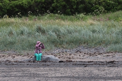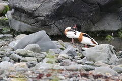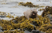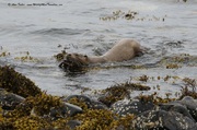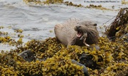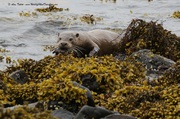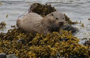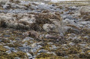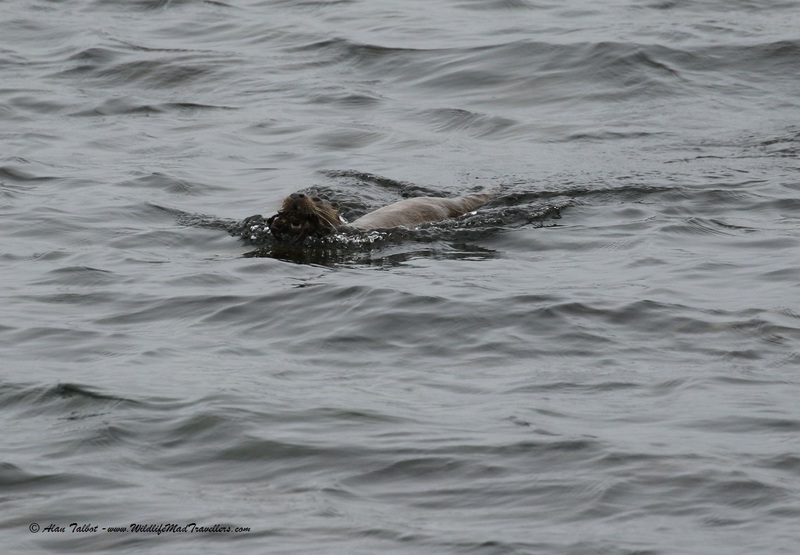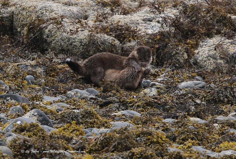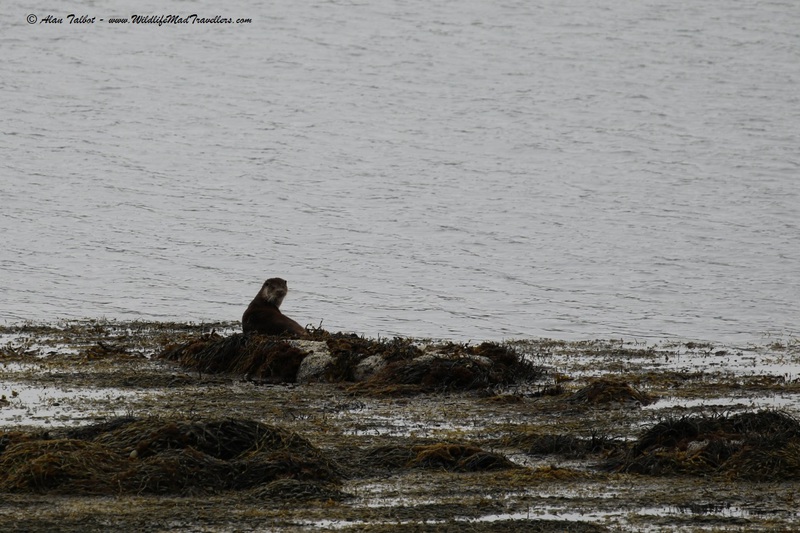 Today, the rain had returned and we decided to stay local again. Heading east, we spotted two otters swimming and as we approached they closed on one another and after a brief wrestle in the waves, one chased the other up the beach.