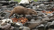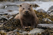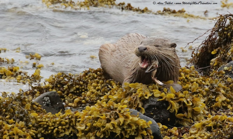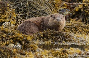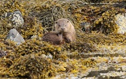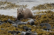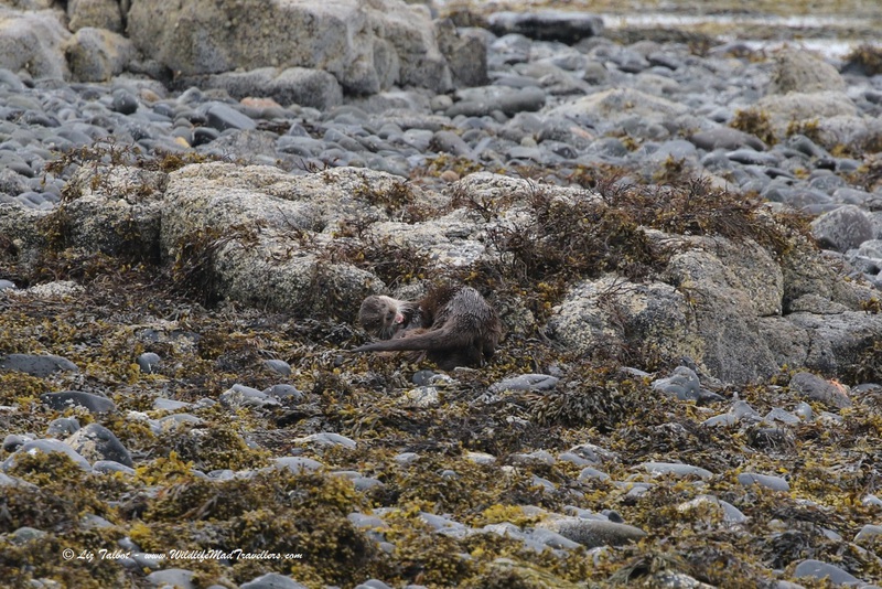 Today was another damp one and we decided to stay around the cottage, and see if otters we had come for were around? After breakfast, I went out on a walk along the beach, and my eye caught some movement at the water’s edge. An otter!