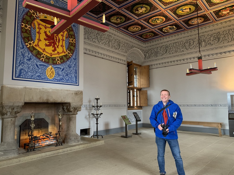 Today would be a long day, it started with breakfast then a drive up to Stirling Castle for entry at opening. It was raining again, and we made a quick trip through all the state rooms before the large tour groups in coaches arrived.