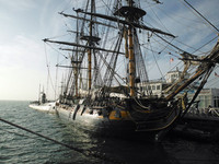 Dan then drove us to Downtown San Diego where we promenaded along Harbor Drive looking at the tall ships (one that featured in the Pirates of the Caribbean) and one that had been decked out with torn sails for Halloween. We dodged the noisy (inappropriately loud music) rickshaws as we took a pleasant stroll in the late afternoon sun.