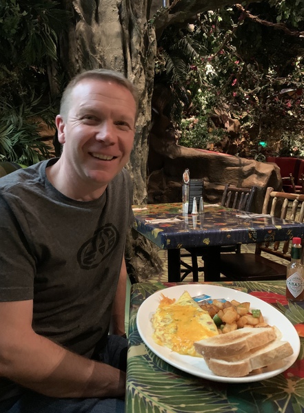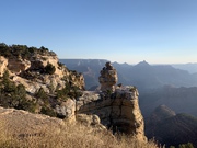We had debated going back for sunrise and then stopping for breakfast on the way back but decided to beat the crowds and do breakfast first. It was very good for a free one and the sun had not risen far once we got back to the rim. We drove Desert View Drive, but this morning it was very windy and cold with it.