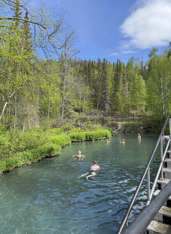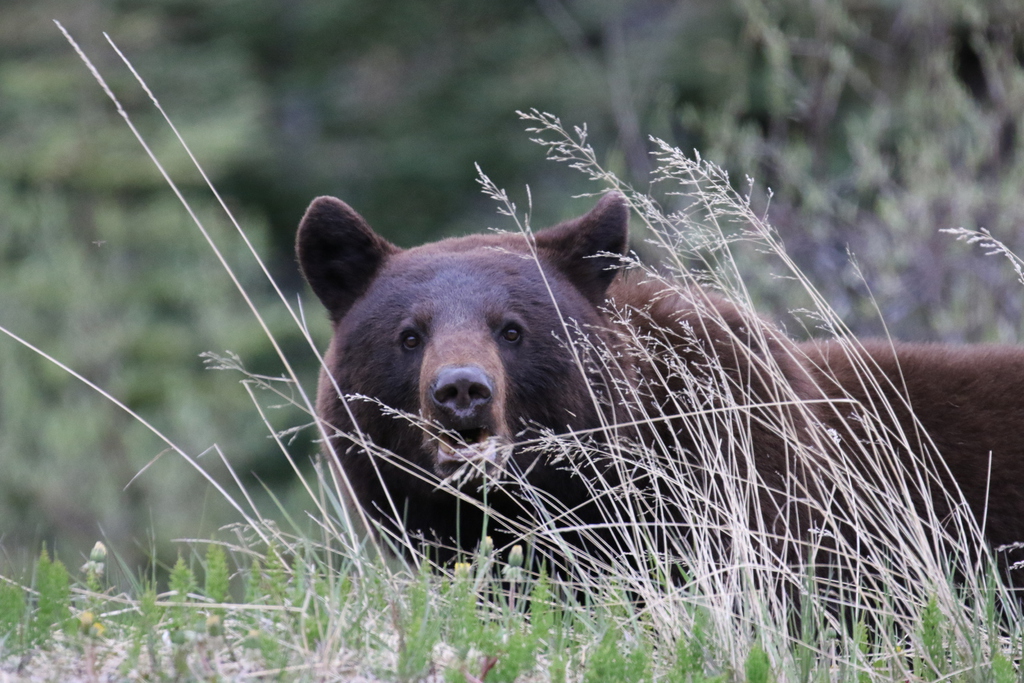 For our efforts, we spotted a couple of Black Bears, and got back to Watson Lake for the opening of the store at 8am. Then onwards along the Alaska Highway to Toad River, spotting more roadside Black Bears hoovering up the dandelions, (7 in total) and the Bison herd as we approached the Northern Rockies. We stopped for a dip in the hot springs, and a lunch break at Liard River Hot Springs Provincial Park and then continued to our accommodation, Toad River lodge, for the next two nights, with a welcome greeting from the Stone Sheep near Muncho Lake. We checked into our lake side cabin and then went for an early dinner with views of the resident moose bathing in Reflection Lake. We spent the rest of the evening watching the wildlife, more moose and the resident nesting swans and birds.