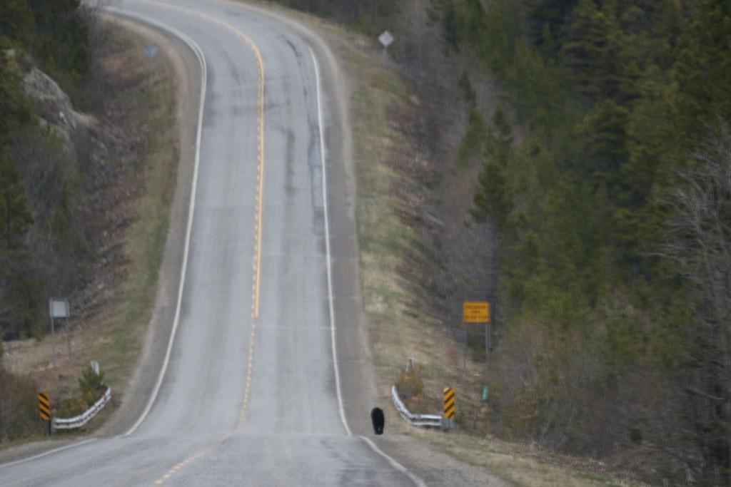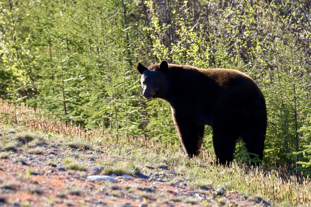 Up early, breakfast snacks on the road, and we set off towards Coal River again, to see if we could find some more Black Bears again, and we did, two good spots a well as moose, Bison and elk. We had also noticed someone had rolled a car nearby since our last stay and the wreckage remained just west of the lodge. We returned past Muncho Lake and headed east again, past Toad River, aiming for a hike near to the steel bridge across the North Tetsa River.