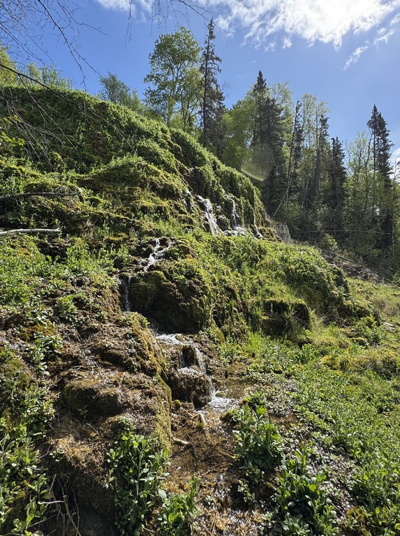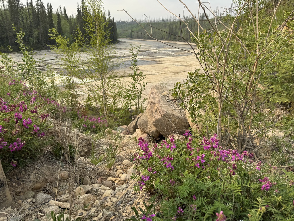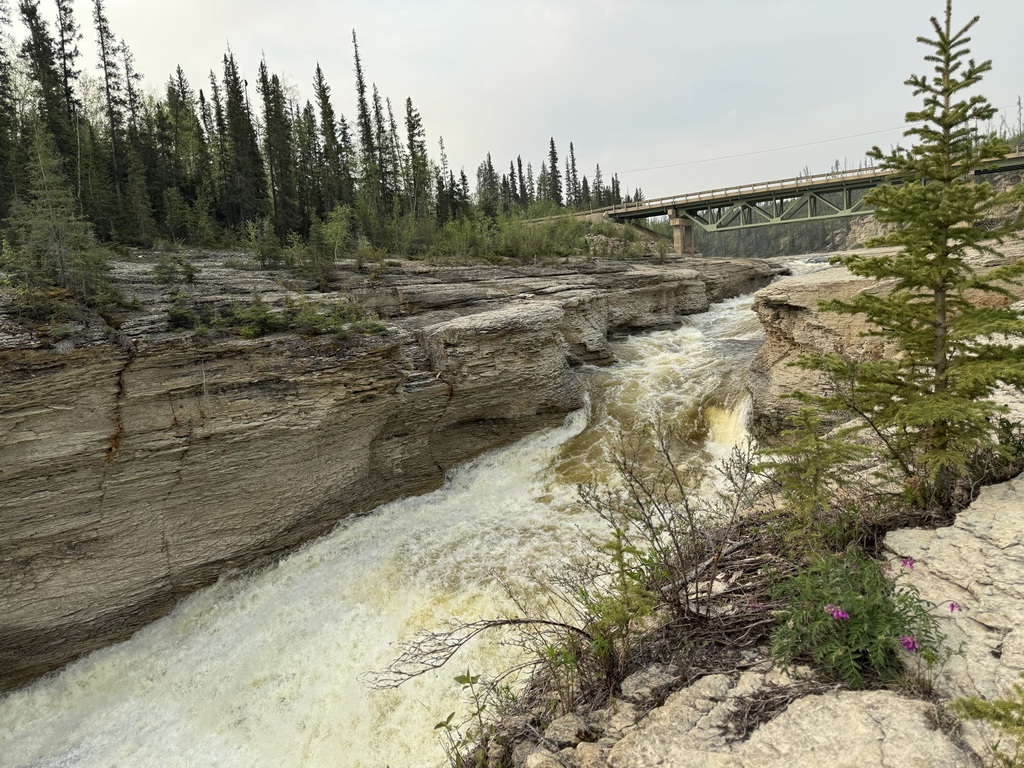 We stopped for a welcome break at Sambaa Deh Falls Park and what a pleasant surprise it was. Scenic highlight of the day so far and we had a nice chat with Ryan, the First Nation resident ranger.
