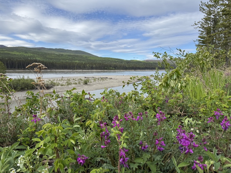 I had still planned to drive the Robert Campbell, (Hwy 40, despite the extra 2 hours starting in Whitehorse), but the weather forecast was for rain, possibly heavy and that road is narrow and can be slick if wet. Plus, the extra time it would add to an 11-hour base drive, so we decided that was for another time. Instead, we would return to an old favorite, the South Klondike, hoping for an early wildlife fix.