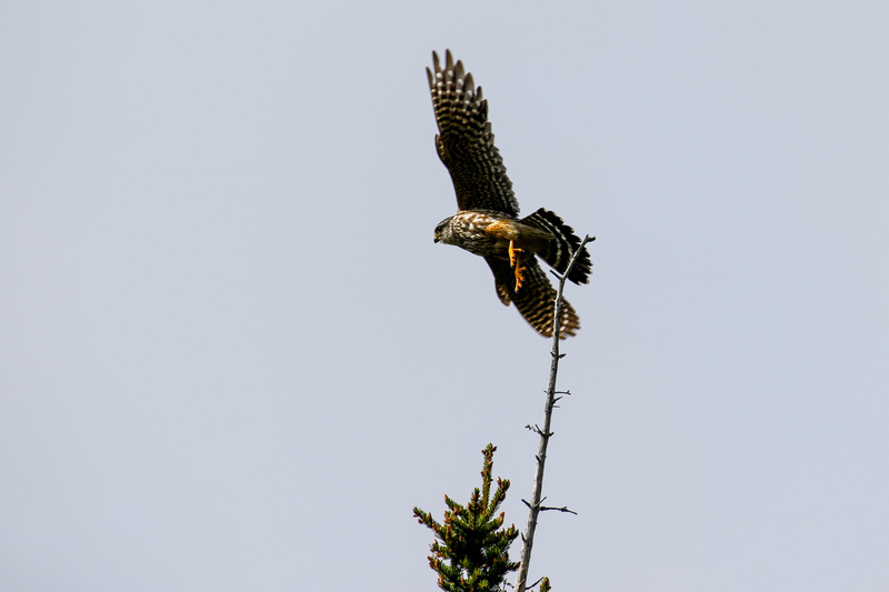 We then turned back towards Toad River, stopping for a walk at the Mineral Licks and attracting the interest of couple of Merlins. Another Moose on the way and again the resident Moose spent the evening bathing in the lake as we had dinner at the lodge, and they were still around when the sun finally set about 11pm.