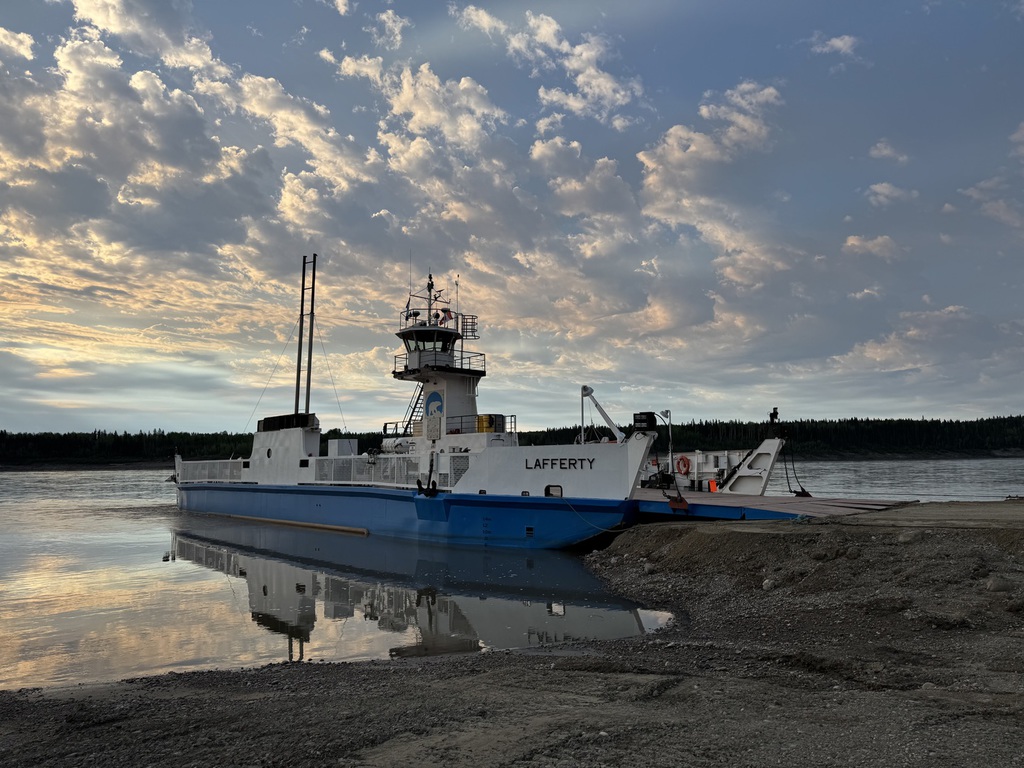 We eventually reached the junction with the Mackenzie Highway (NWT Highway 1) and turned west onto the paved section towards Fort Simpson. But first we had to cross the Liard River on the free ferry, the MV Lafferty. The short 10 minute crossing went without a hitch (ice road is used in the winter, but Fort Simpson is cut off by road in late Fall and early Spring for freeze and thaw). The ferry had only started running for the season the week before we arrived.