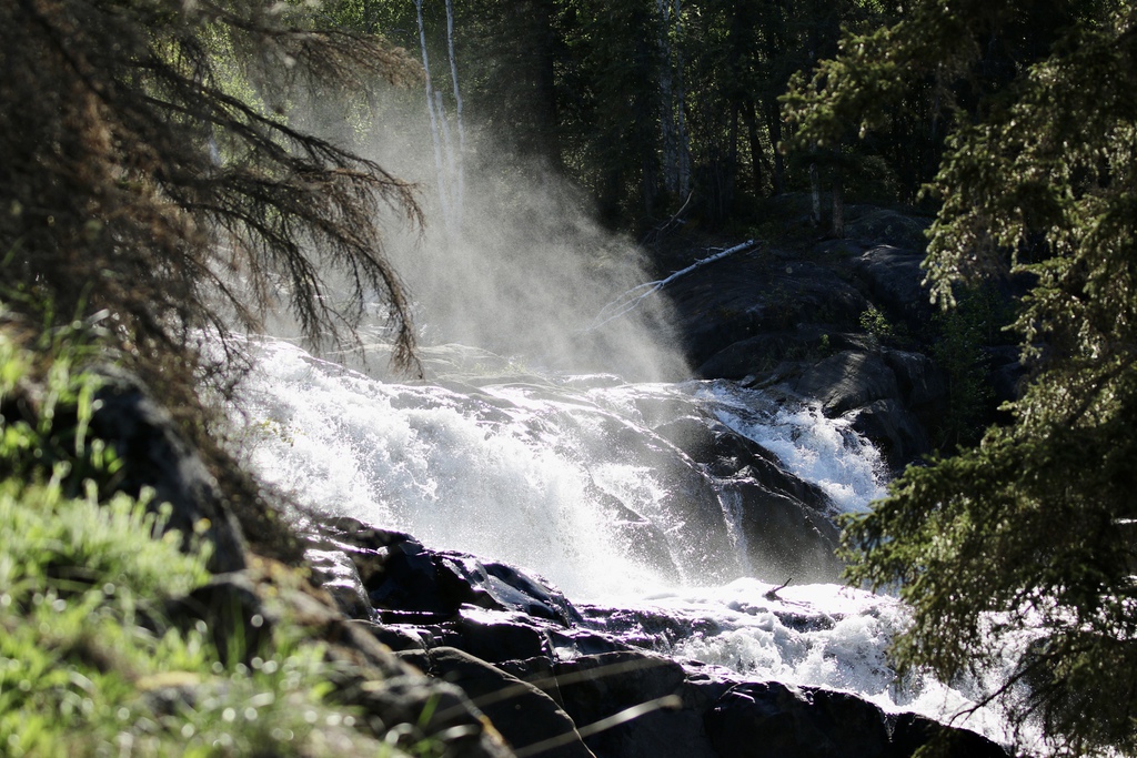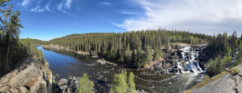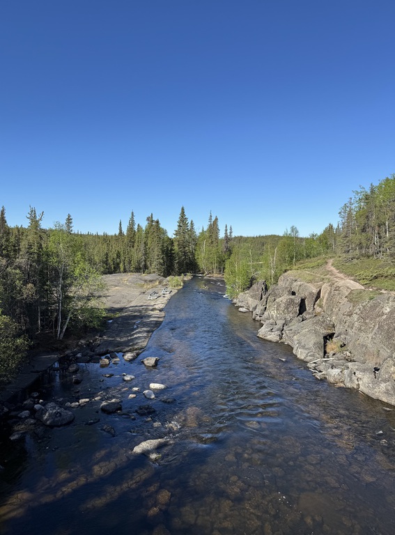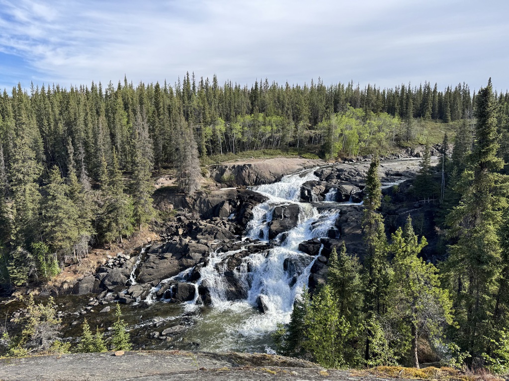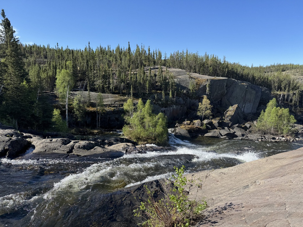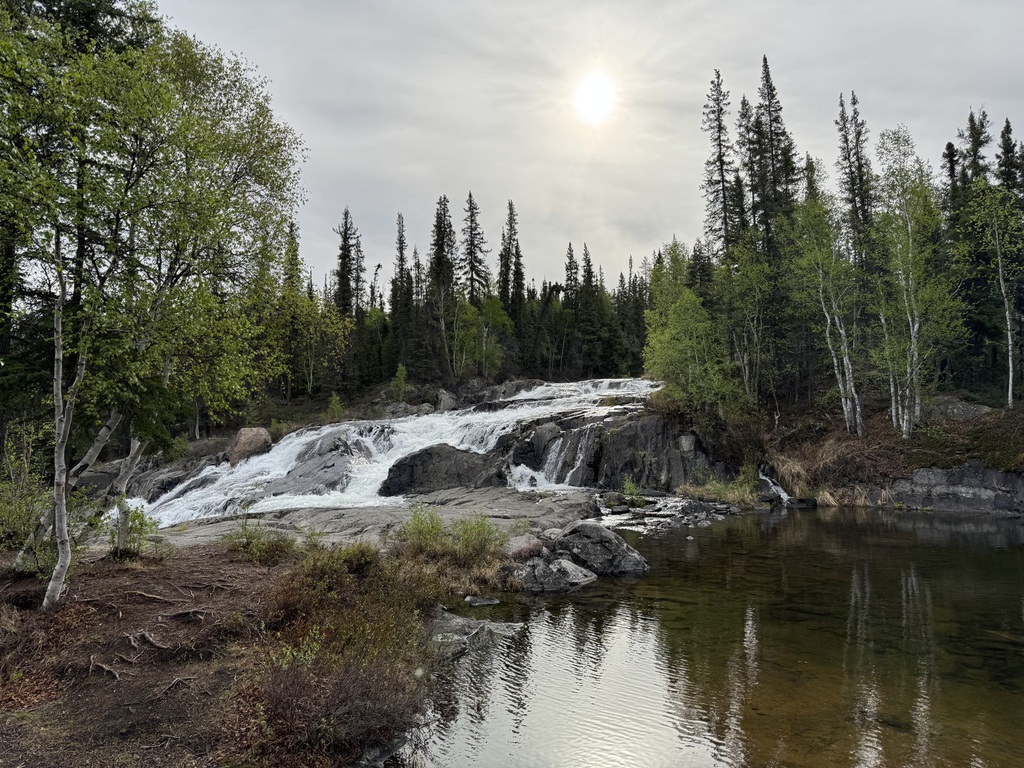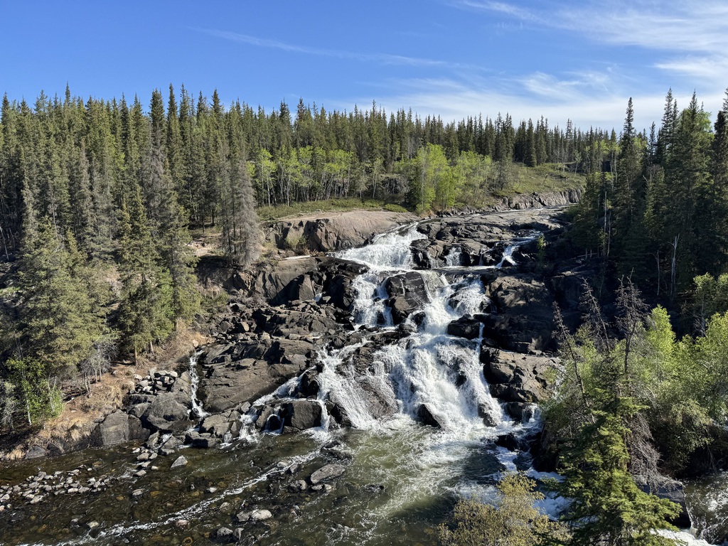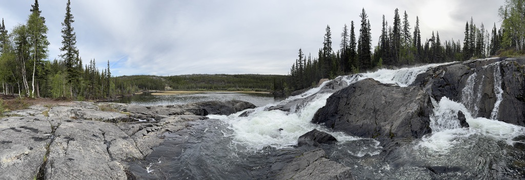 First was Cameron River Rampart Falls, and we did a short hike across the granite to the falls and back. Then to Hidden Lake TP and Cameron Falls, and a longer hike there and back, and no one else around at either location…other than some ducks and dippers etc.