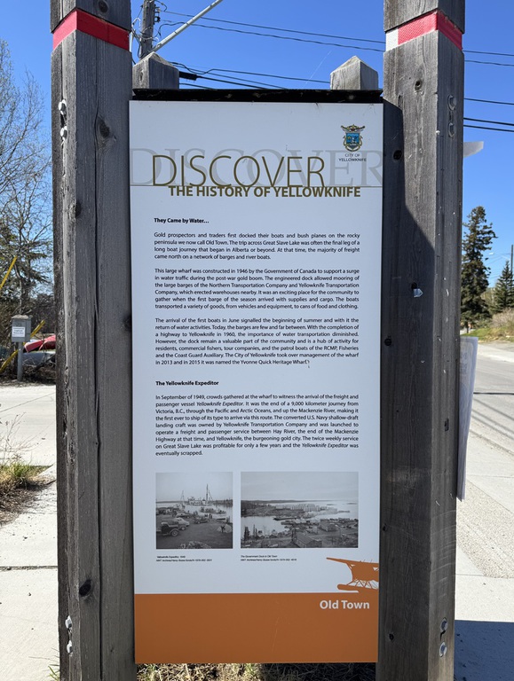 We drove into the Old Town area, and parked at the NWT brewery, before a walking tour, which included the Bush pilots monument and Ragged Ass Road (the original sign had been stolen it appeared).