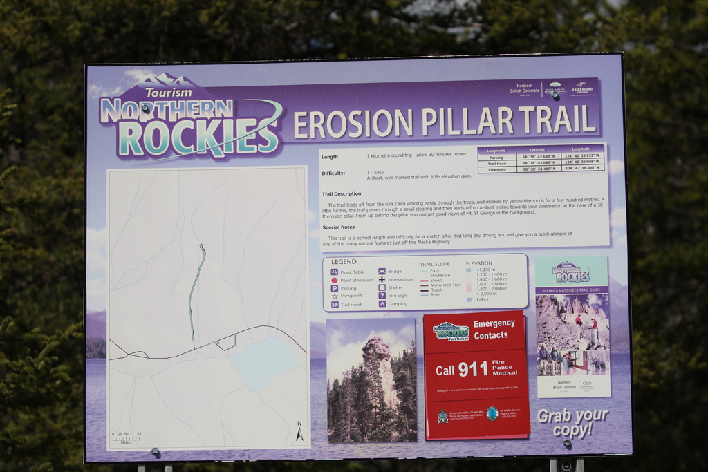 We had short stop in Fort Nelson for gas and a look around the visitor center, then back to Toad River, closing the big loop at the Liard Hwy junction and taking a stop for a short hike and leg stretch at the Erosion Pillars, before calling in for a late lunch at Toad River (as we have eaten at Northern Rockies lodge before and were not keen to repeat it!) and we had a mid-afternoon arrival at our accommodation for the next two nights. We again spotted Moose and Caribou along the road.