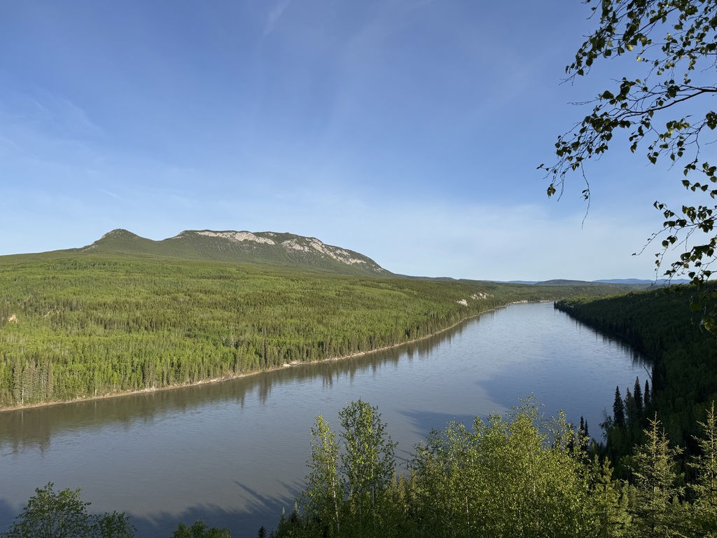 We took a short diversion into Fort Liard for a quick look and gas at the card lock facility in town. No Bison in town but we did find a cow moose and young calve blocking the highway just after we left. She finally led her baby safely into the verge and we continued on.