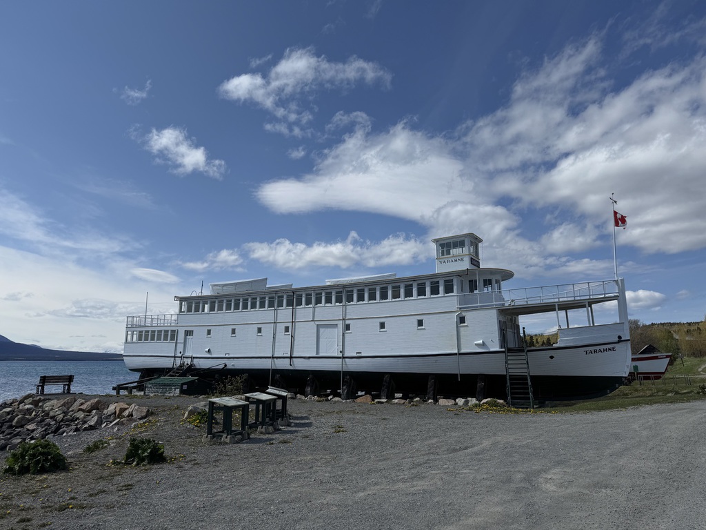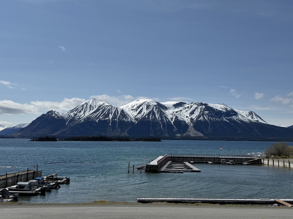 We got to Atlin mid afternoon and walked around the lovely town and a burger at the Mountain Shack before it closed at 4pm, then enjoyed the wonderful view from our room at Brewery Bay.
